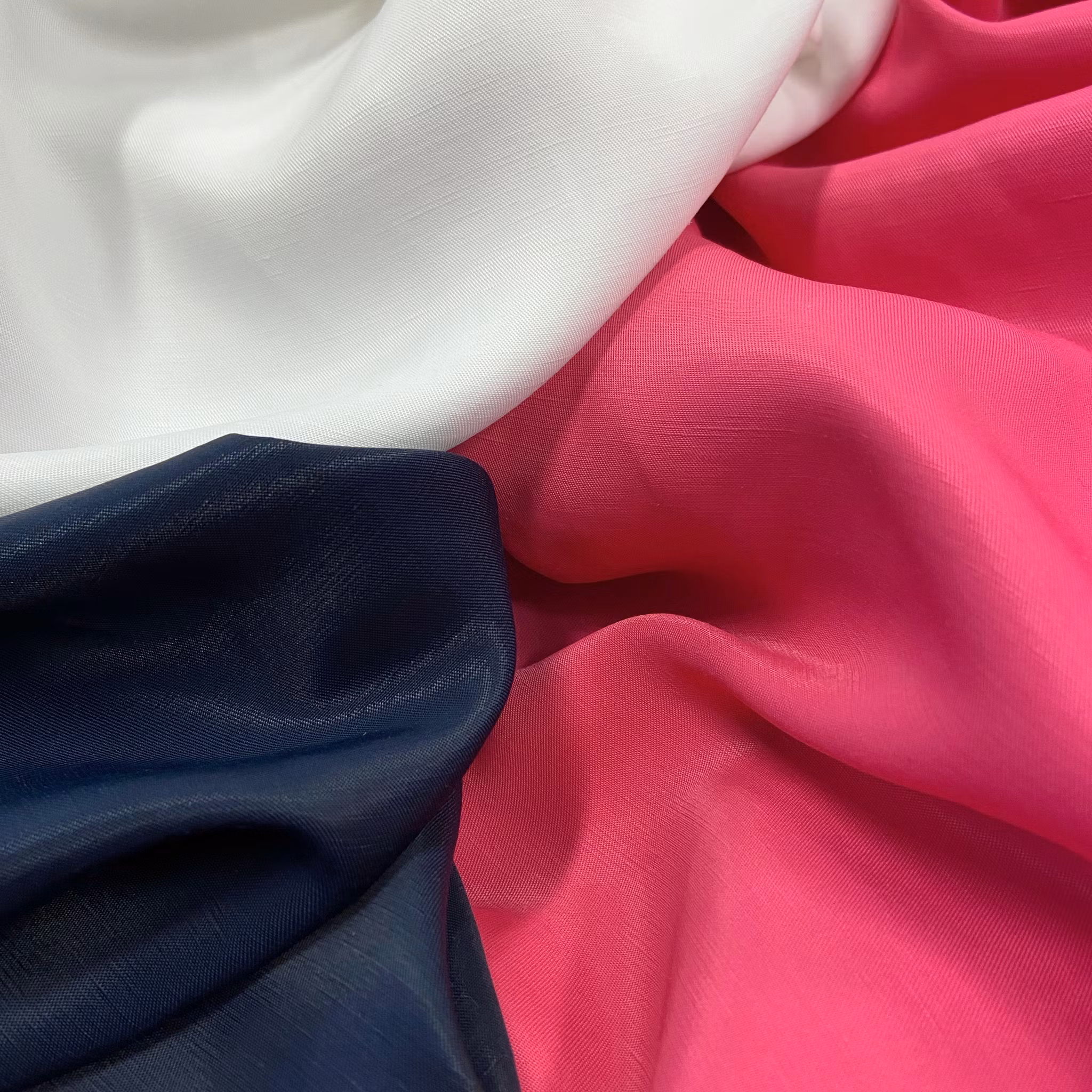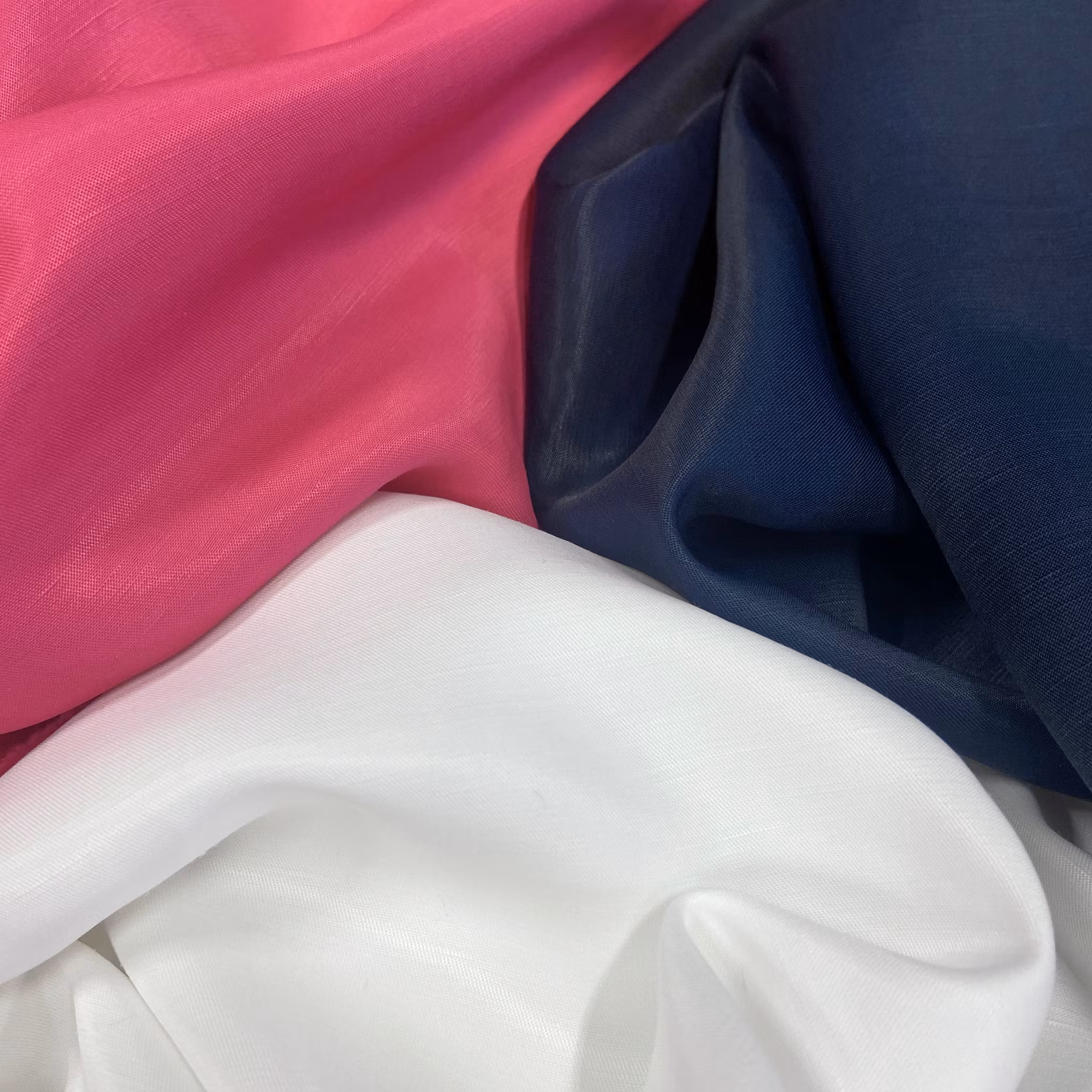 Material: Linne och cupro, blank (men inte jätteblank) yta med lite linnestruktur. Tät men smidig. Relativt kraftigt. Faller jättefint!