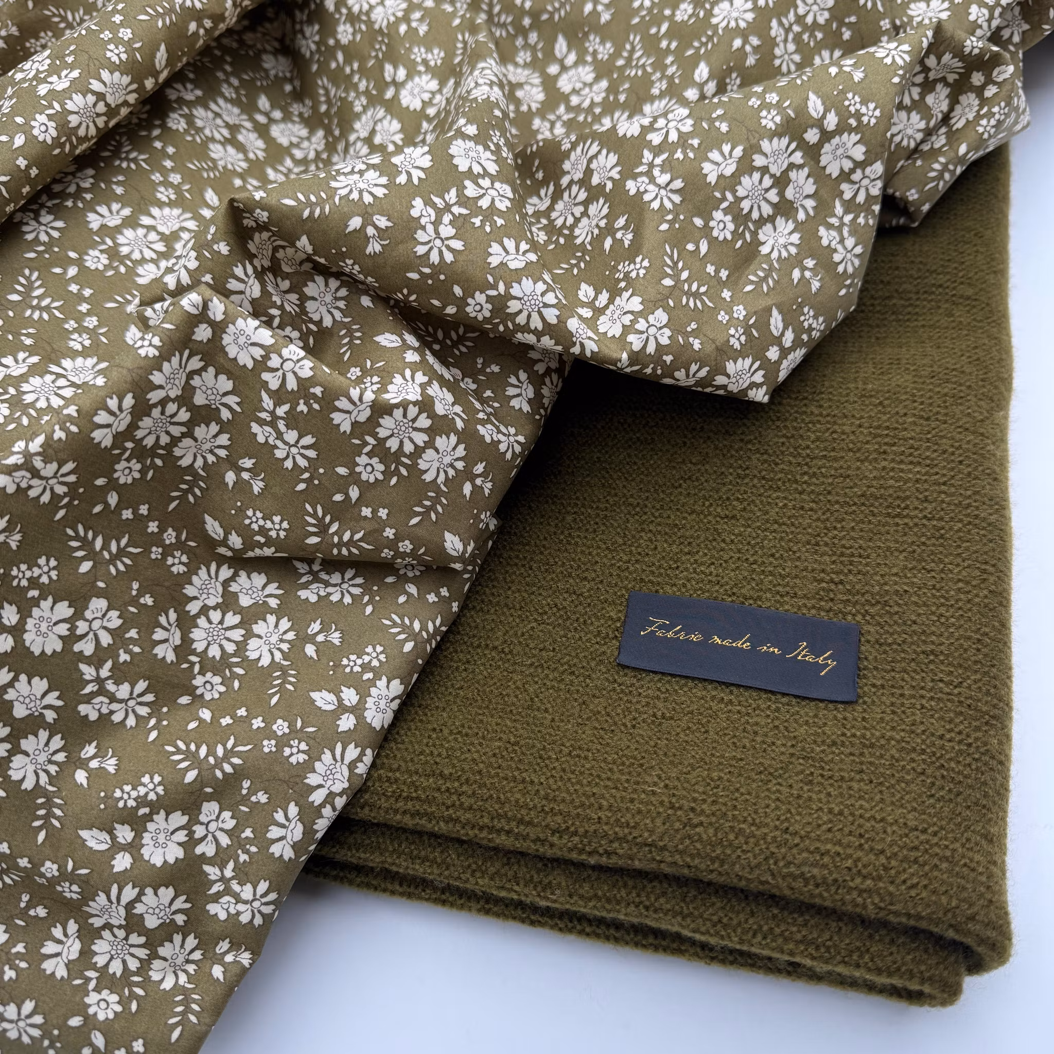 Färg: olivgrön botten och beigevita blommor