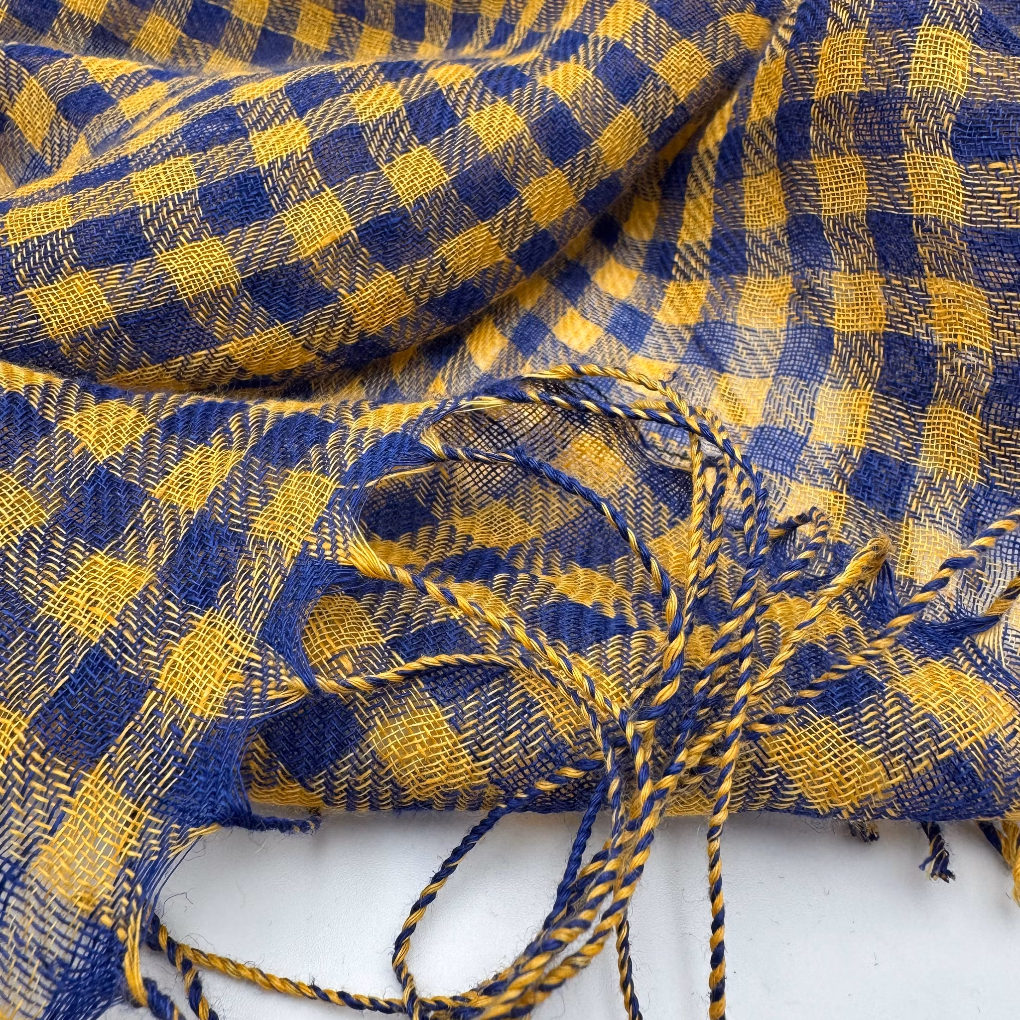 Material: 100% lin, mjuk och gles, fransar i båda ändar.