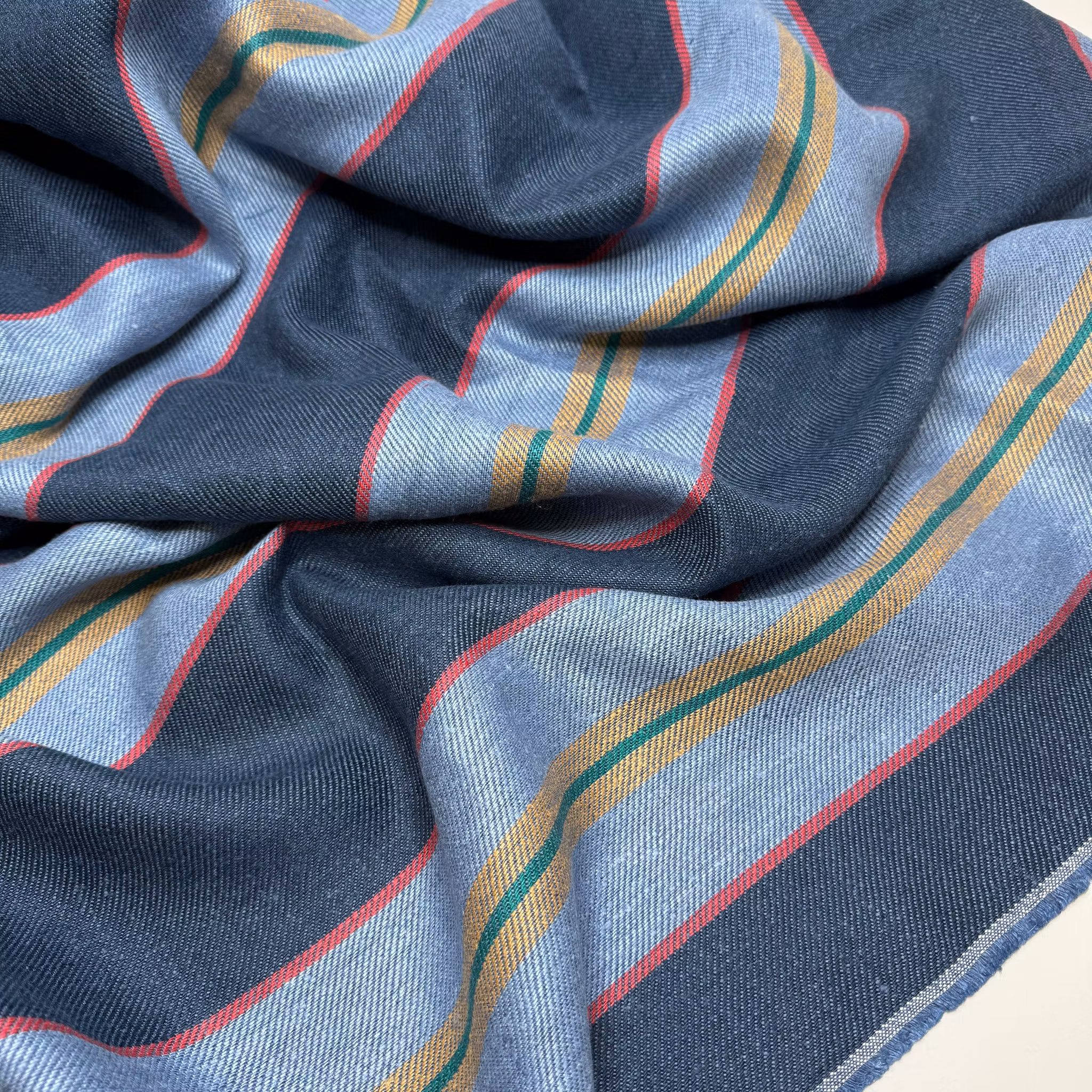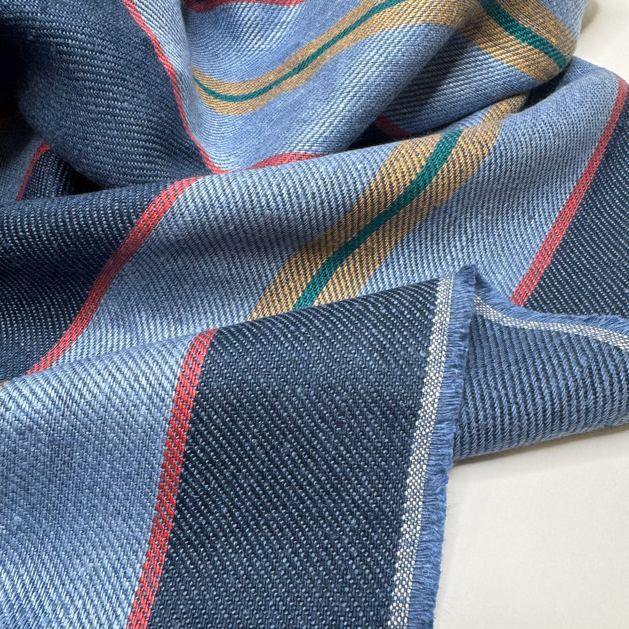 Färg: två blå nyanser i botten och smala ränder i gult, grönt och rött