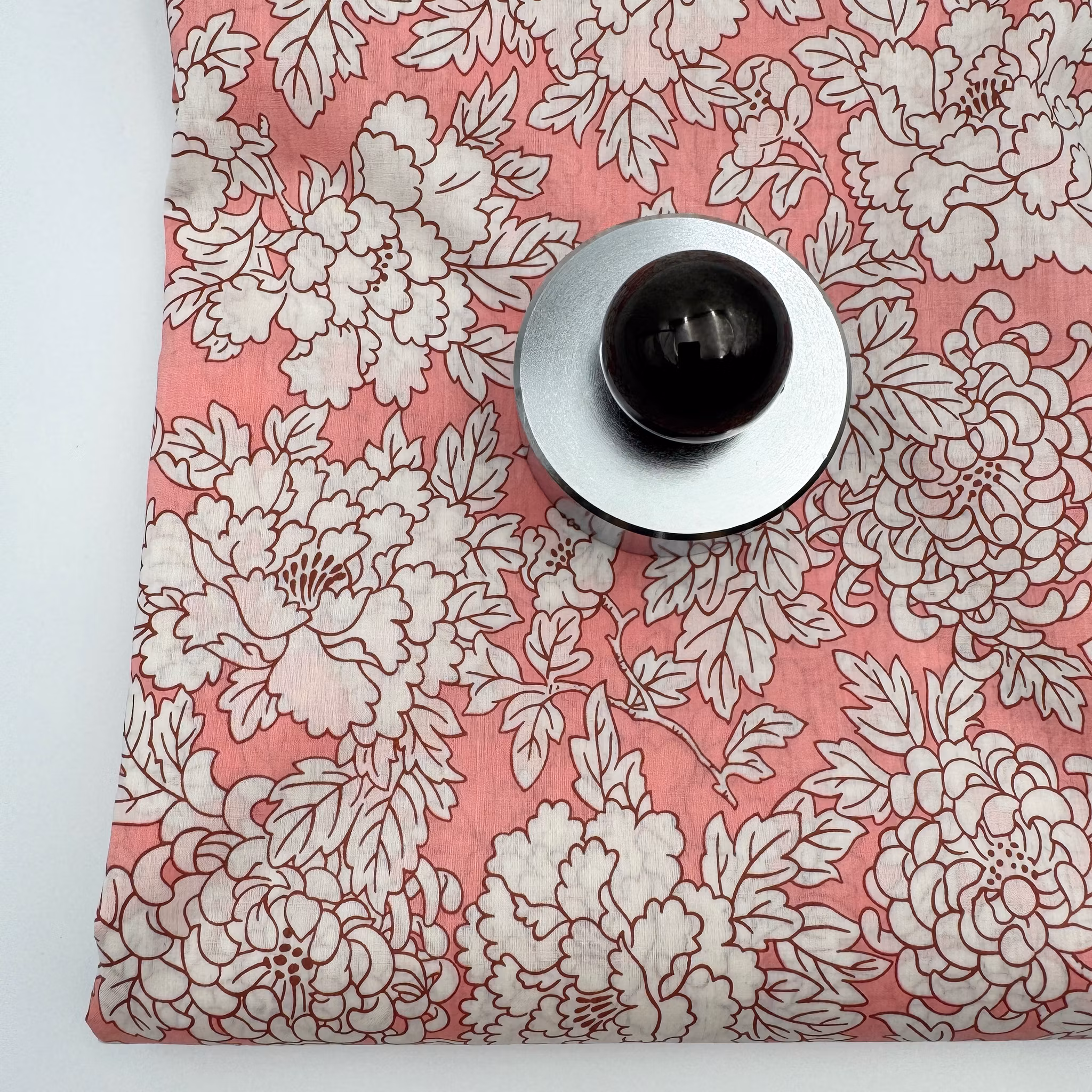 Färg: vita blommor på laxrosa botten