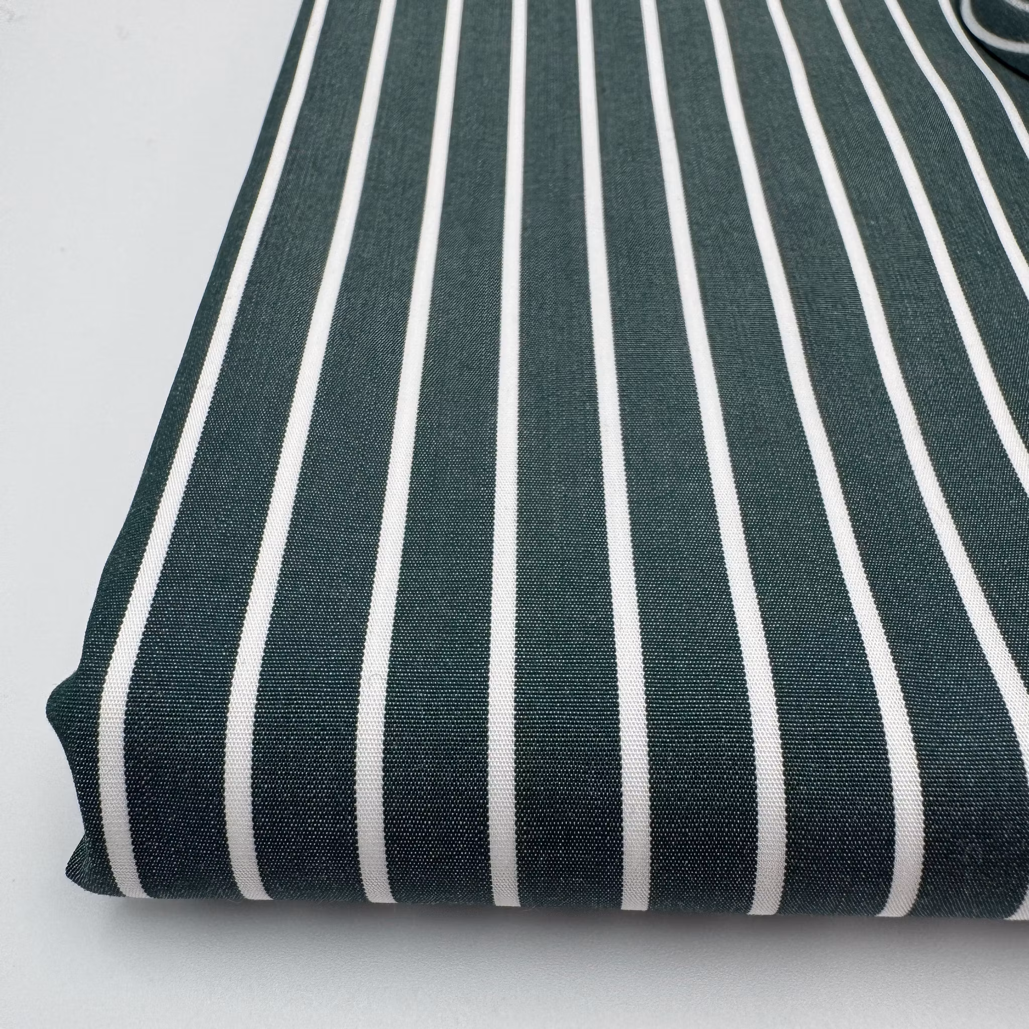 Bomullspoplin vit/mörkgrön rand