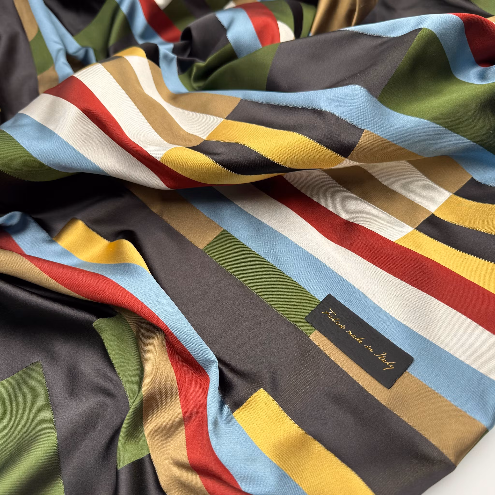 Material: 100% siden, lyxig jaquard som har lite stadga.
