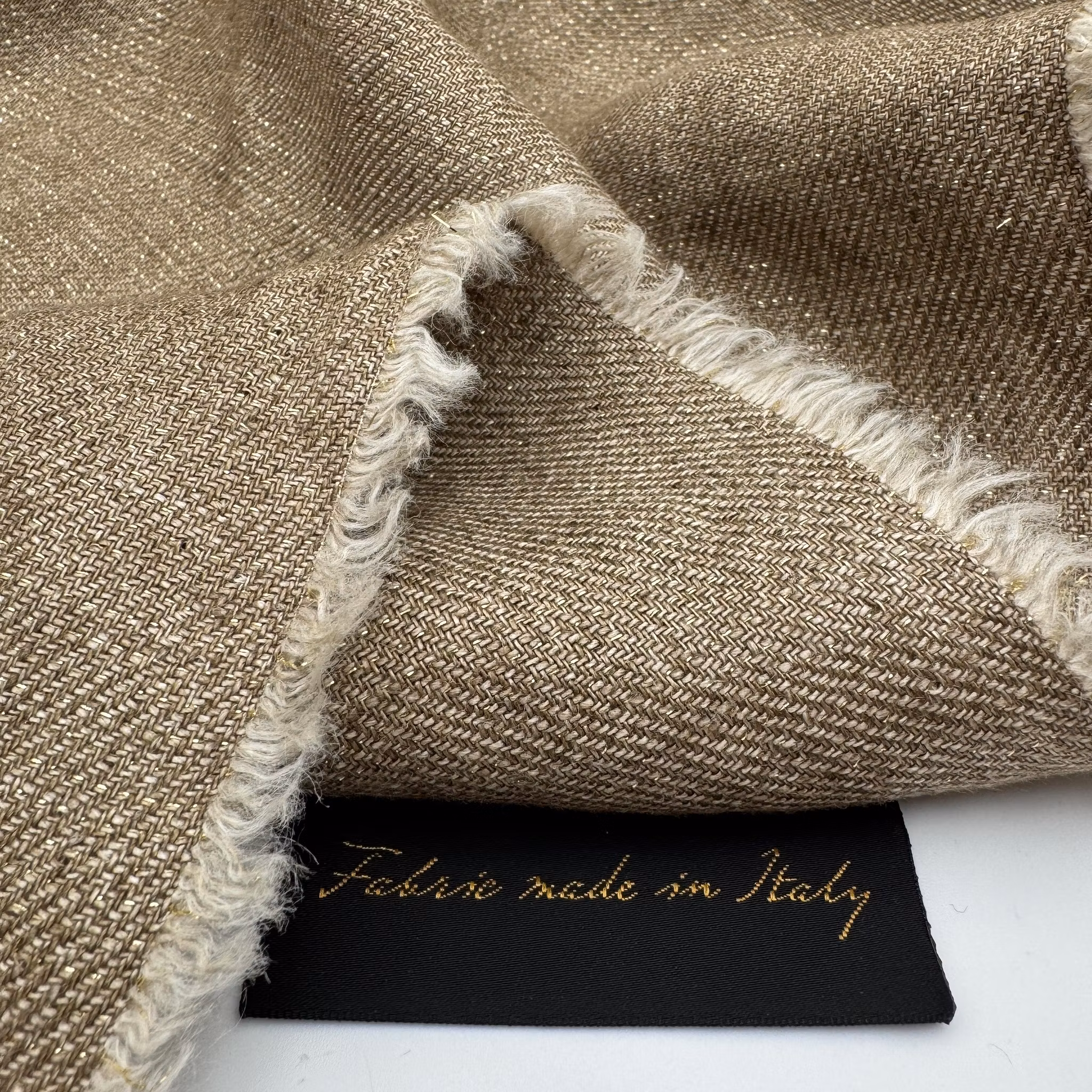 Färg: Mörk naturfärg/ljusbrun/jute med diskreta guldtrådar.