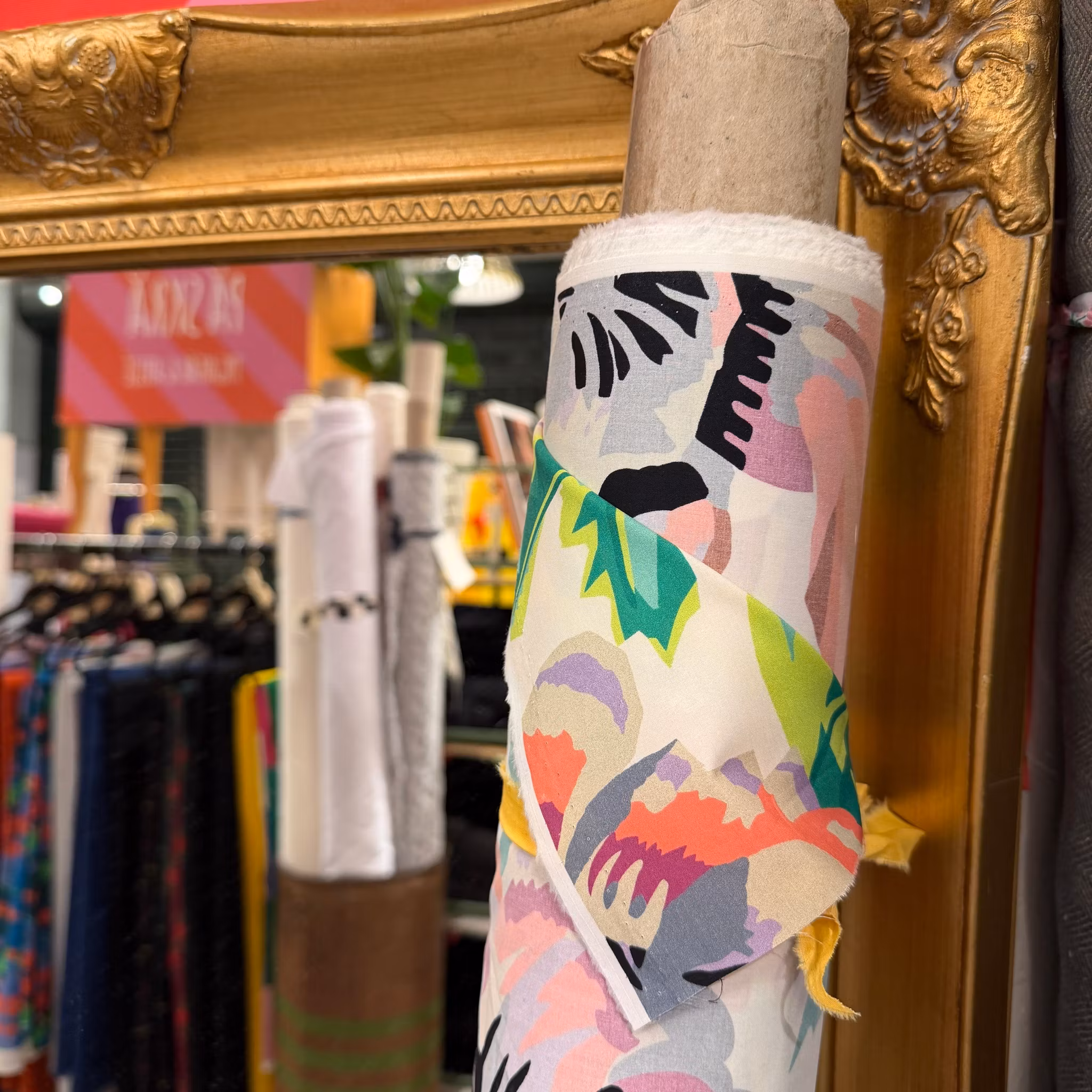 Färg: beigevit botten, tryck i klara färger