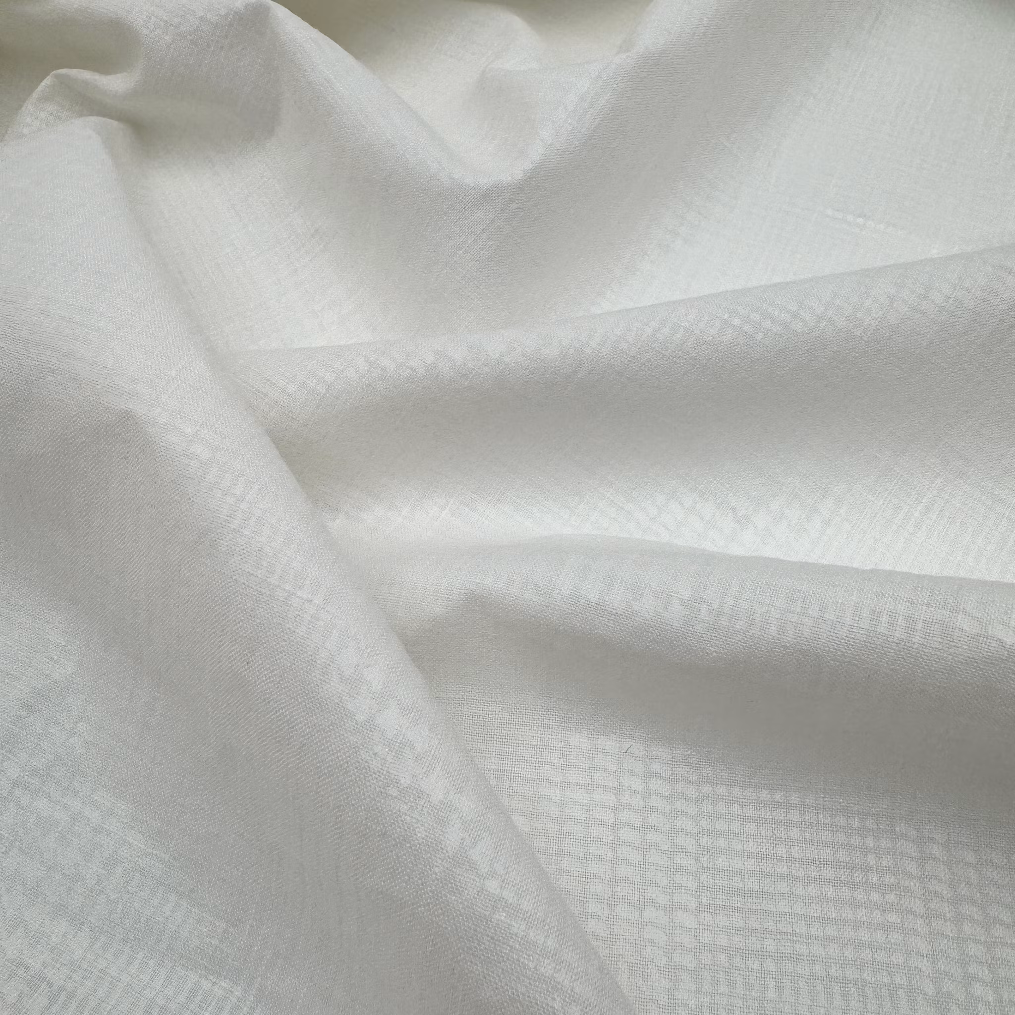 Material: 100% lin, tät men tunn kvalitet med tryckta glencheckrutor. Mönstret är glittrar bara lite diskret. Illusion heter tyget. Linne med en rolig twist. Hembygdsgille möter high fashion;)