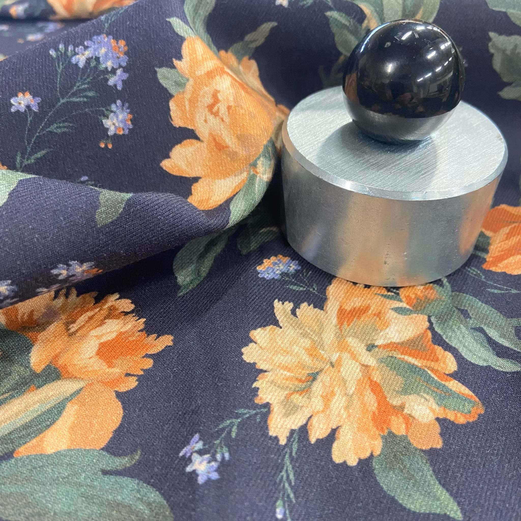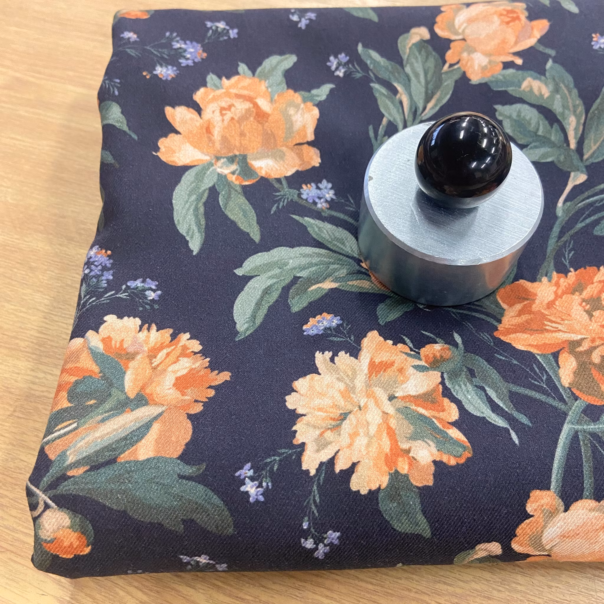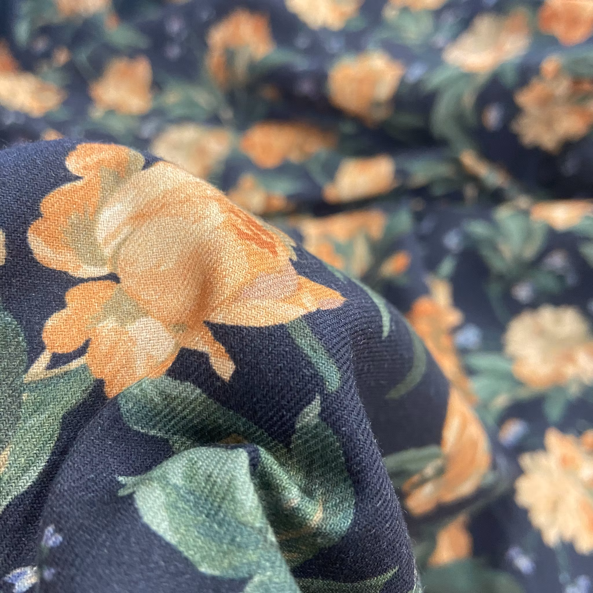 Färg: Mörk marinblå botten, Rostfärgade blommor.