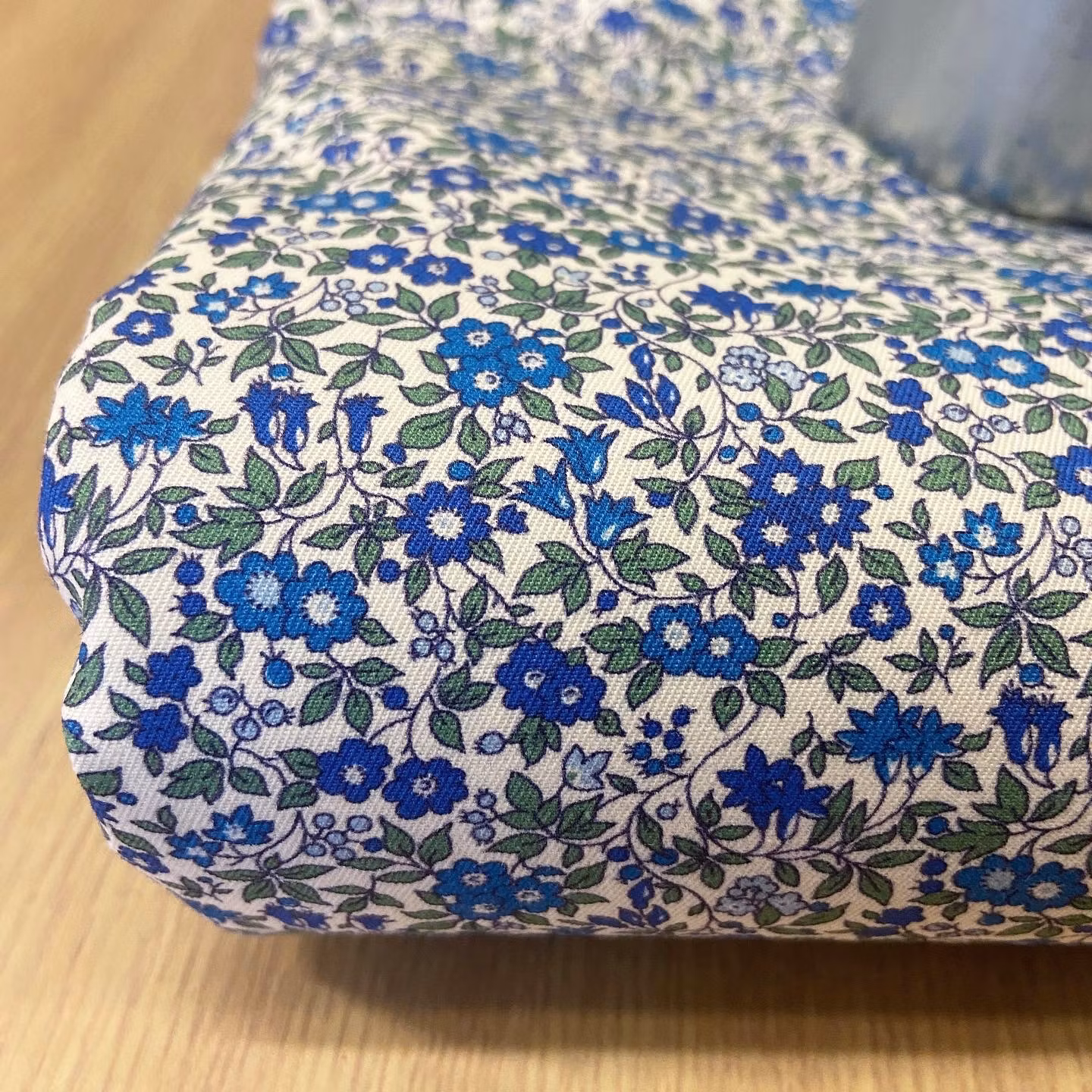 Färg: Gräddvit botten, Blå blommor.