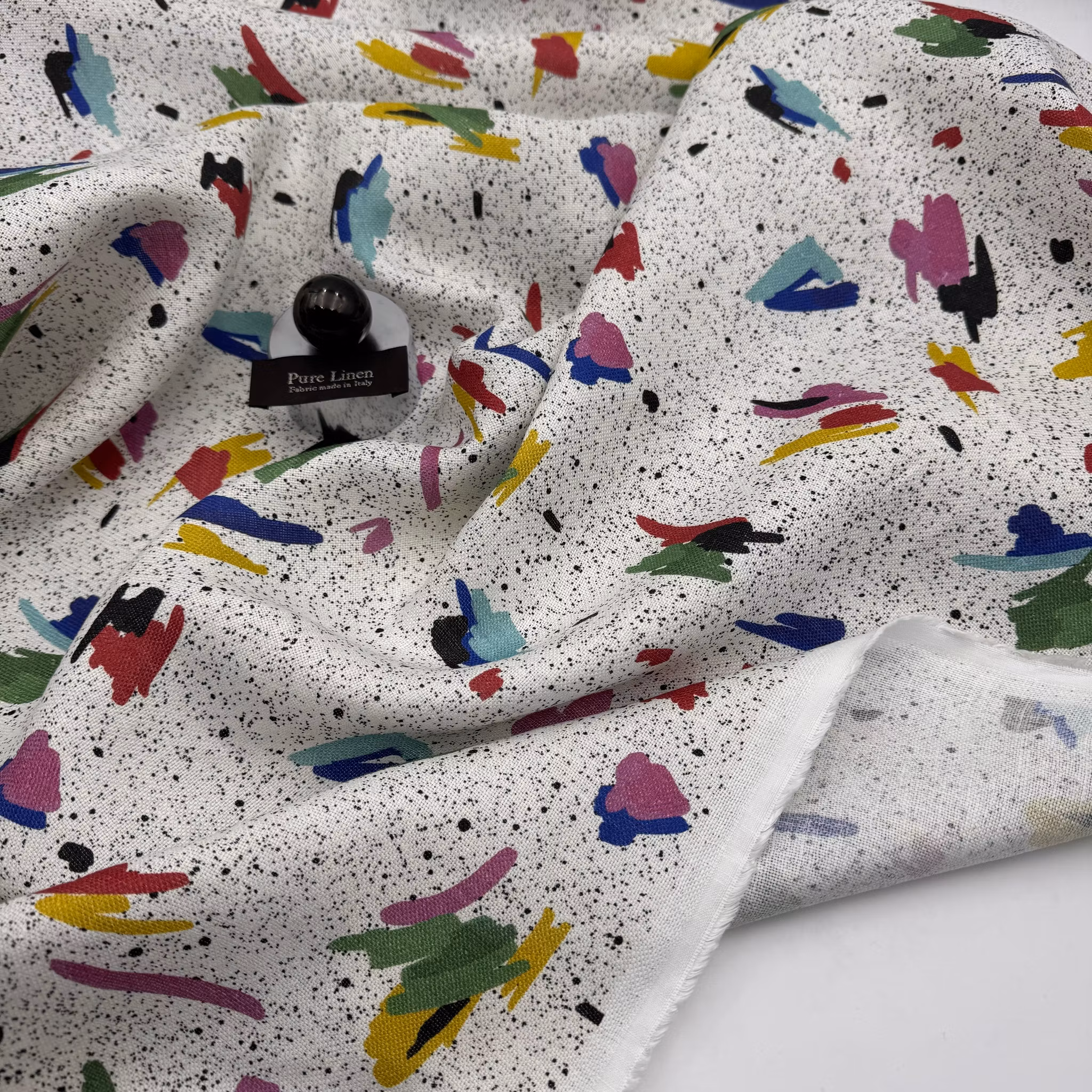 Färg: vit botten och stänk i olika färger.