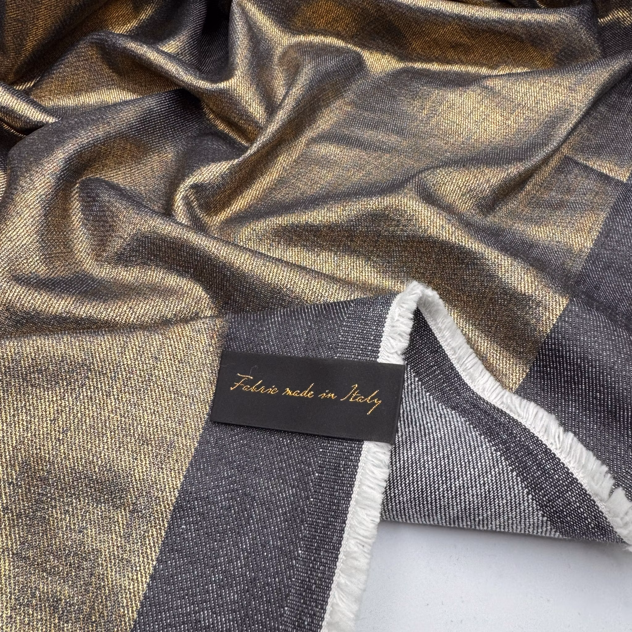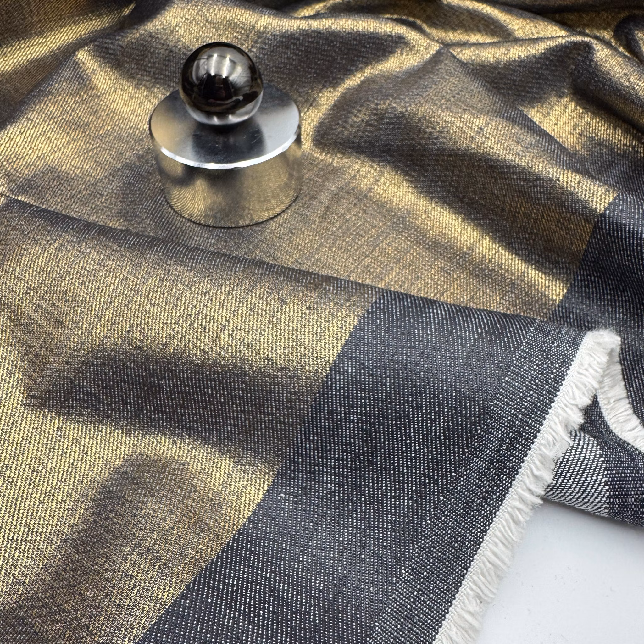 Material: 100% bomull, smidig denim med guldbeläggning/tryck