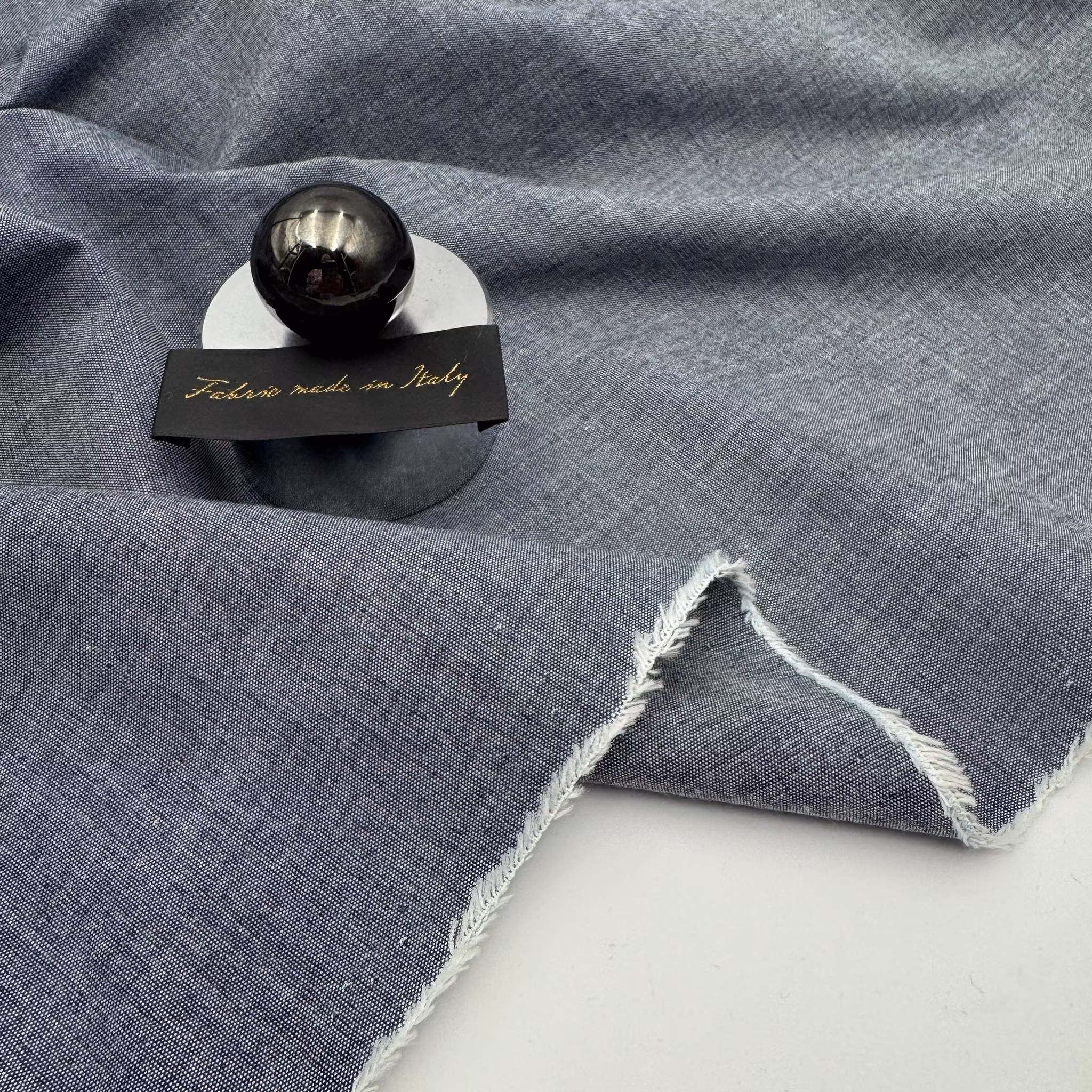 Material: Bomull/elastan, lite kraftigare skjortchambray, tänk någonstans mittemellan chinos och skjorttyg.