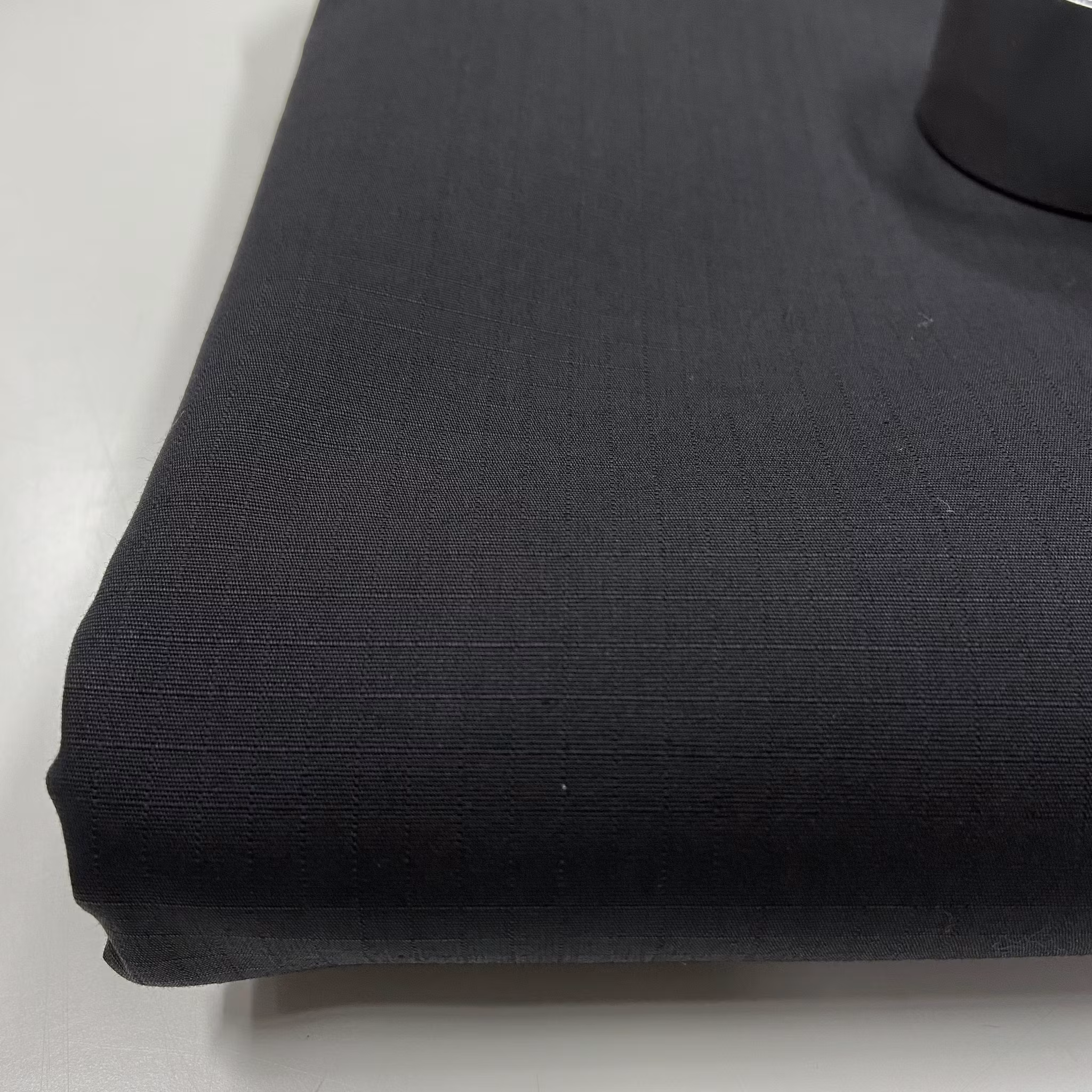 1m Bomull, ripstop, svart. Stuvbit, finns ett svagt märke på biten