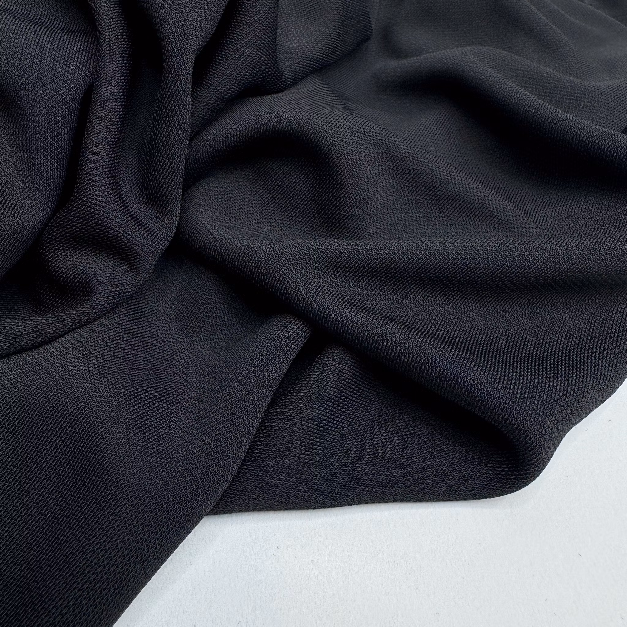 Material: 100% viskos tungt fall, kylande känsla, halvblank yta. Tänk Filippa K-trikå.