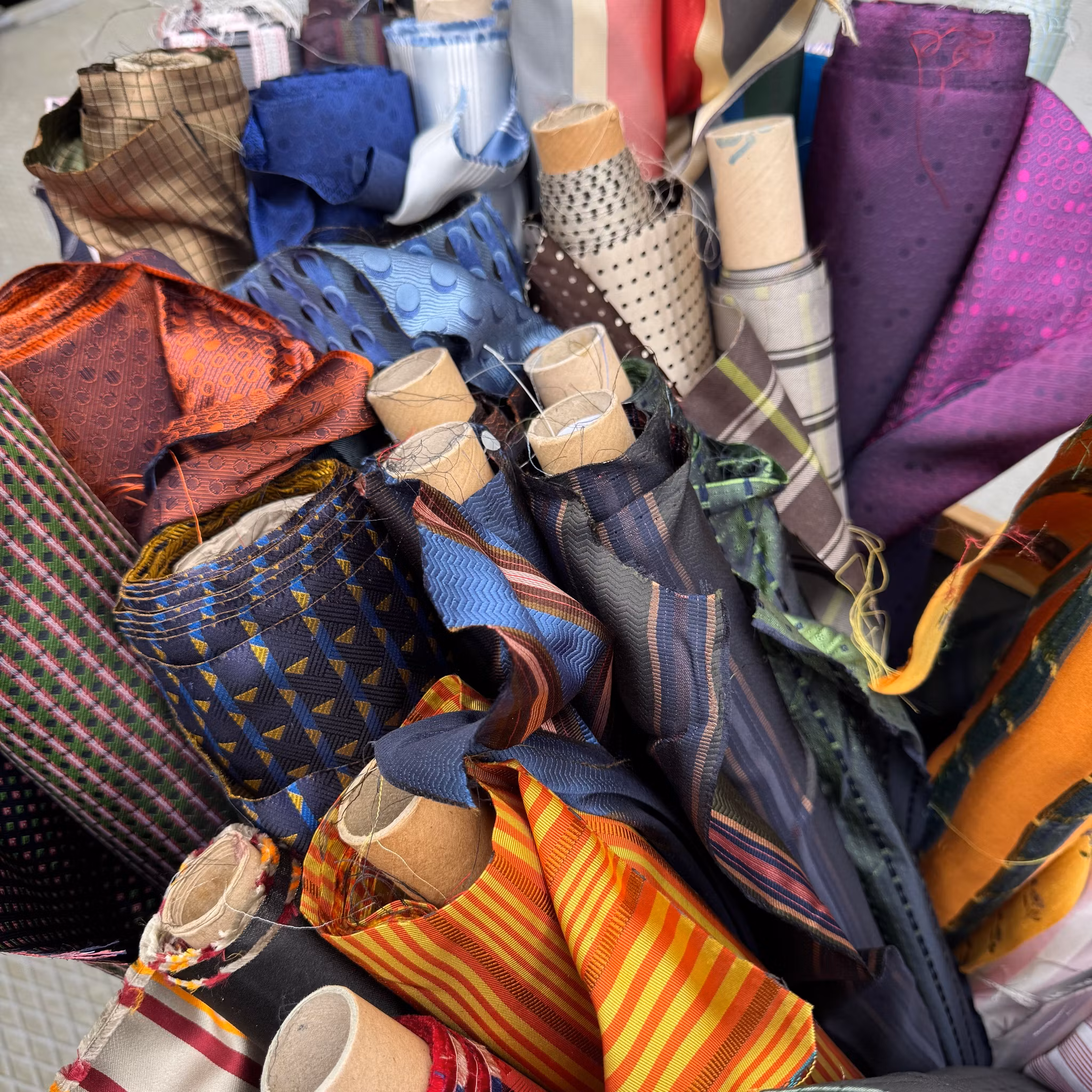 Stuvar av 100% vintagesiden. Olika längder, från 0,5 upp till 5 meter. Finns massor av användningsområden, kan bli fina kuddar, västbakstycken, slipsar och flugor eller allehanda pyssel. En del bitar är långa och då kan det ju blir hel jacka/dräkt. Patchwork är ju en lysande idé annars.