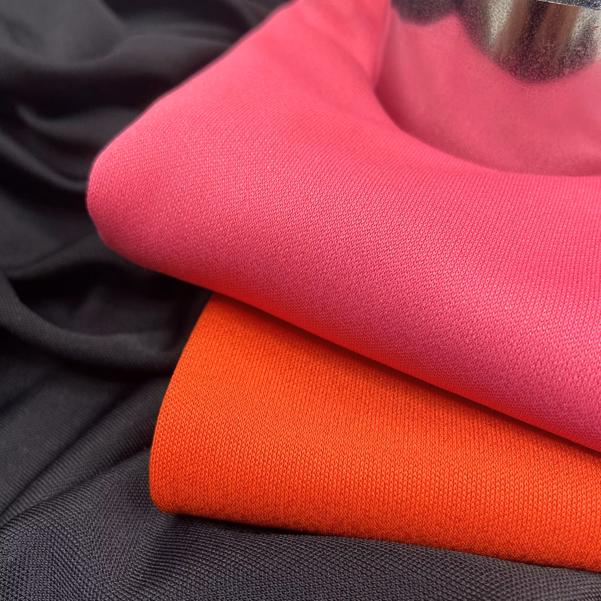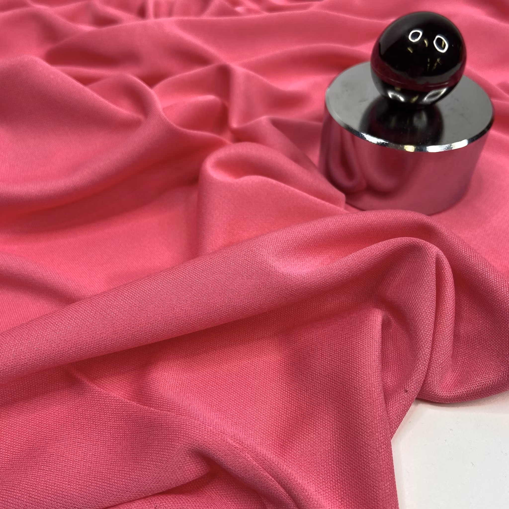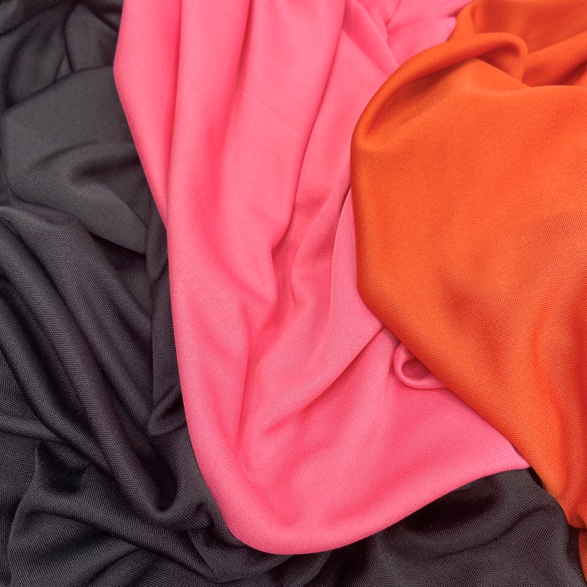Material: Viskos och siden, tunnare interlock, d.v.s. liksidig och inga kanter som krullar sig.